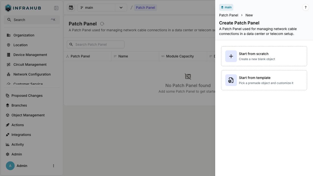 Heading back to Infrahub you will notice new entries in the left-hand menu. Before entering template information we will create a device type, this will be useful for later.